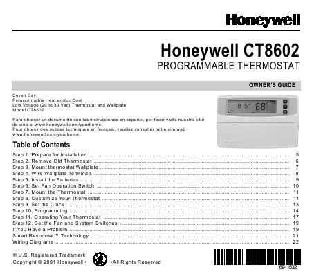 -. Title : HONEYWELL PROGRAMMABLE THERMOSTAT CT8602 7 DAY SEPARATE PROGRAMS FOR EACH DAY.