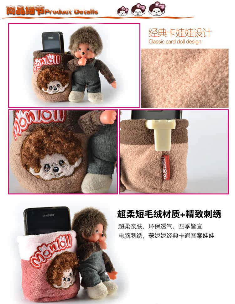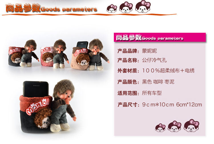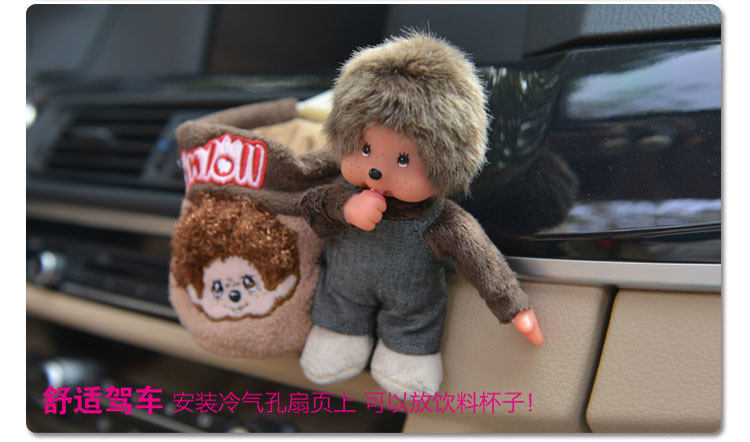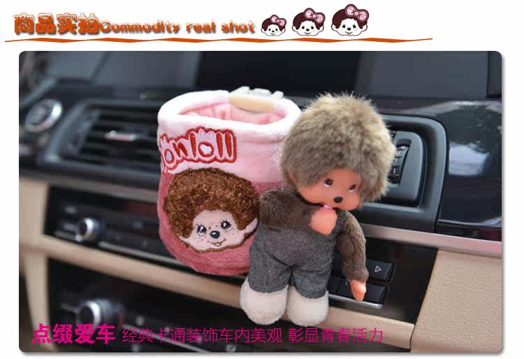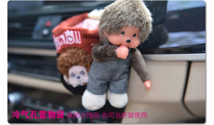 新款蒙奇奇汽车空调出风口置物筒桶袋 可爱卡通车用手机饮料架