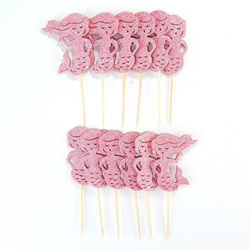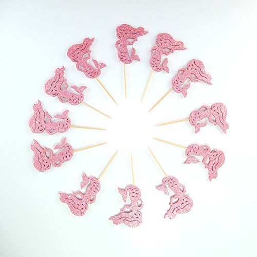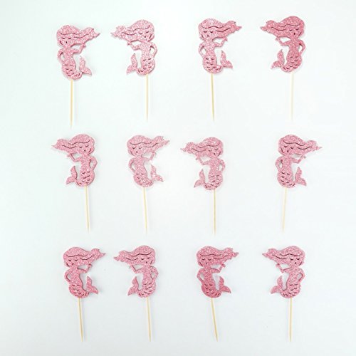 Mermaid Little mermaid Cupcake Topper 12 Pack Cupcake Topper Decoration Cake Glitter Foamy Pink