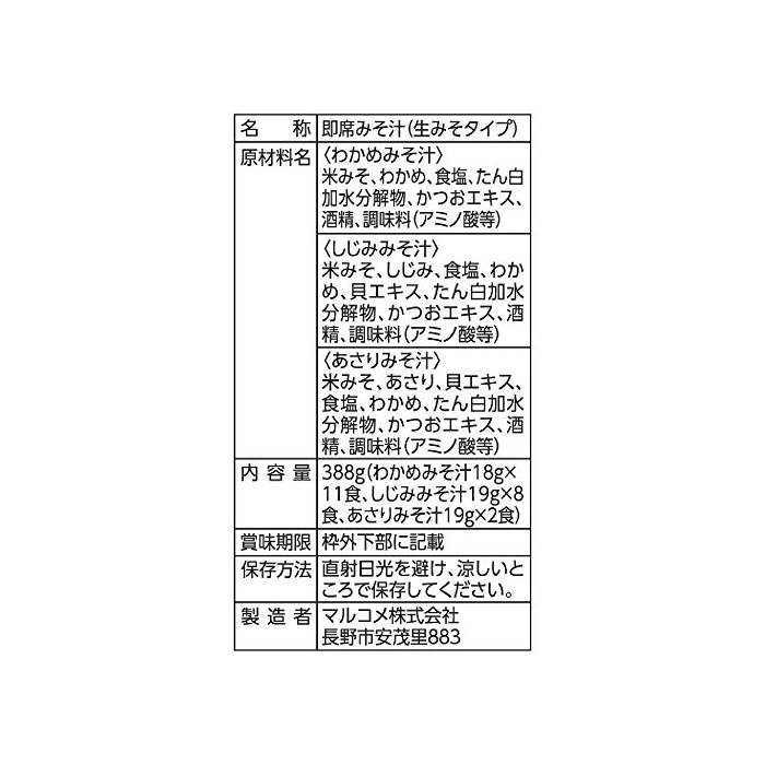 원재료:미역(미 된장,미역,식염,단백 가수분해물,가다랭이 엑기스,주정,조미료(아미노산등))고, 모시조개(미 된장,찾아다니고, 패엑기스,식염,미역,단백 가수분해물,가다랭이 엑기스,주정,조미료(아미노산등))고, 바지라기(미 된장,바지라기,식염,미역,패엑기스,단백 가수분해물,가다랭이 엑기스,주정,조미료(아미노산등))