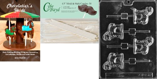 Cybrtrayd 45St50Bk-E417 'Lamb Lolly' Easter Chocolate Candy Mold with 50 4.5-Inch Lollipop Sticks and Chocolatier's Guide