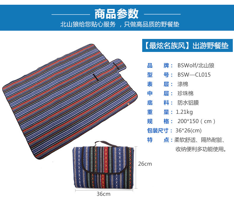 北山狼户外野餐垫防潮垫加厚涤棉户外垫超大野营防水帐篷地垫