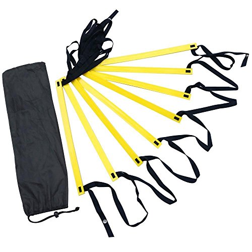 -. Feature : 100% brand new agility ladder for soccer football training / Improve coordination and speed by practicing foot work / Adjustable 8 flat-rung meets various needs / Thick and dense nylon with snap button at the ends for joining / Material: PP and Nylon
