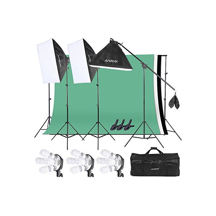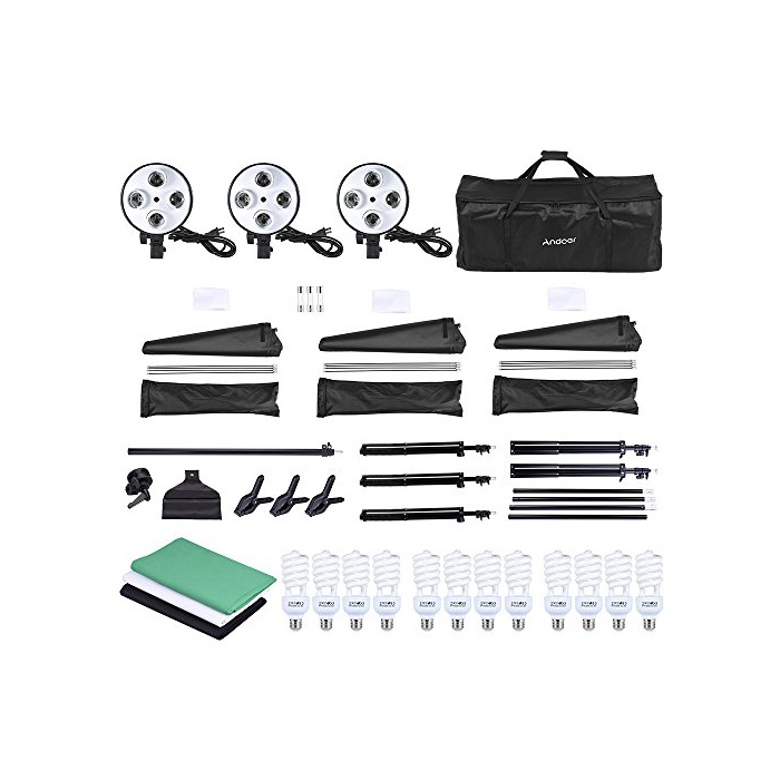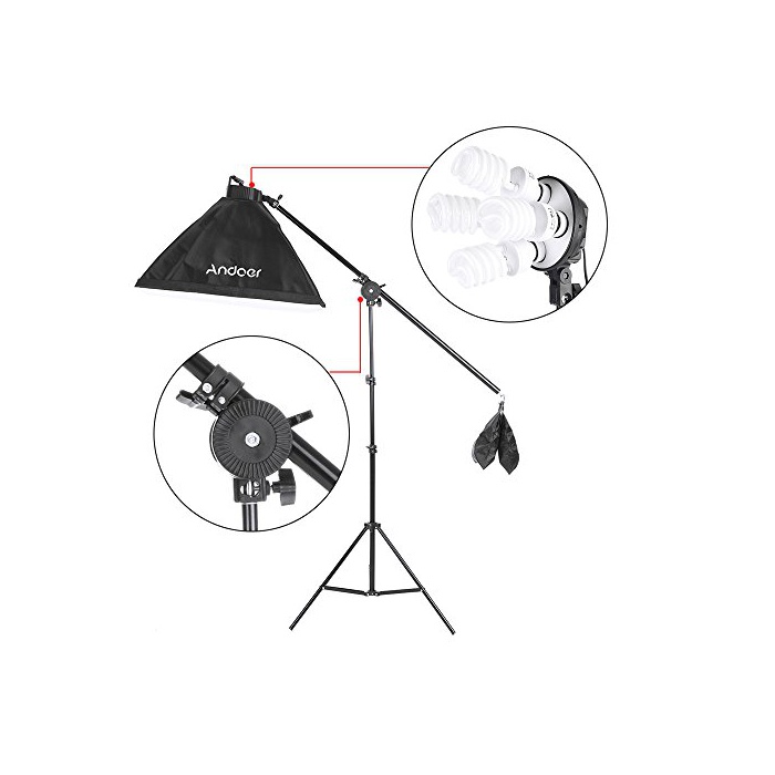 원본상품명: Andoer プロ用 豪華30件 撮影照明キット 3本 ソフトボックス + 12個 45W電球 + 3枚 4in1電球ソケット + 3本 2mライトスタンド + カンチレバティック + 3枚 1.6