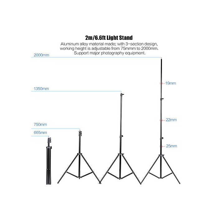 라이트 스탠드는 알루미늄 합금에 만들어집니다,매우 내구성이 있습니다.작업성적이다는 간단하게 조정에 옵니다.높이는 2m까지입니다.cantilever 스틱은,75cm부터 139cm까지 조절 가능하고,조명으로도 편리합니다.