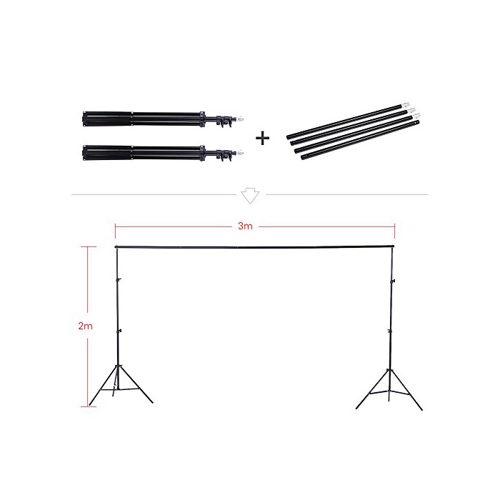 2m * 3m의 배경 스탠드 세트는 고품질의 알루미늄 합금에 만들어지고, 그 스탠드는 퀵 록을 사용하고, 그 crossbar《―》는 4개의 별개의 스틱,높이와 폭을 간단하게 조정에 옵니다.