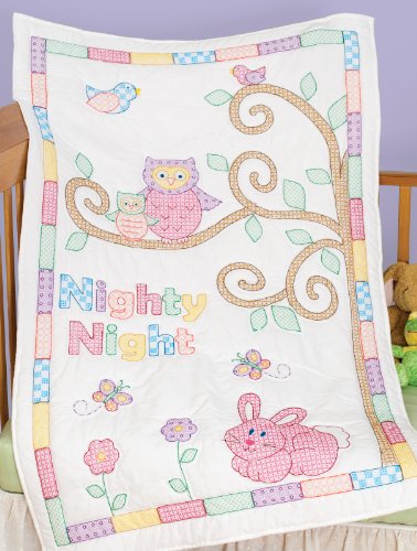 Jack Dempsey Needle Art 4060506 Owls Crib Quilt Tops, 40-Inch-by-60-Inch, White