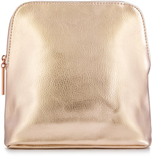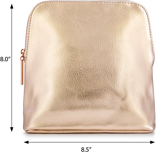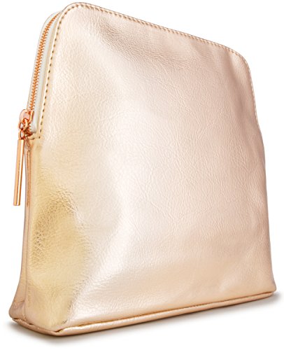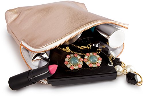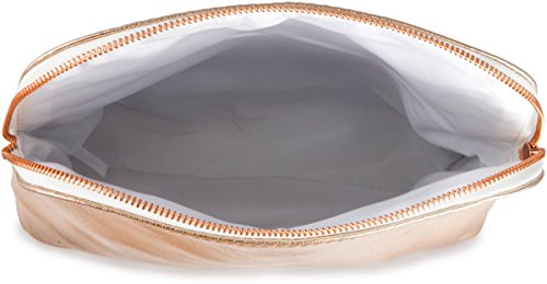 This women's luxury metallic rose gold clutch pouch bag is ideal by itself to wear or to put in your luggage or carry-on bag. It measures 8 inch in height and 8.5 inches in length and about 1.5 inches in depth.. It is It is roomy to fit your essentials, like wallet, makeup and cosmetics, and brushes.