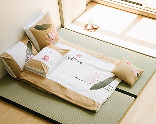 Orient Sense 3-Piece Lotus Flower Gold/White Duvet Cover Set (King)