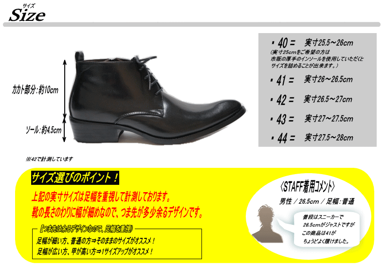 本品は靴の長さのわりに幅が細めなので,つま先が多少余るデザインです。