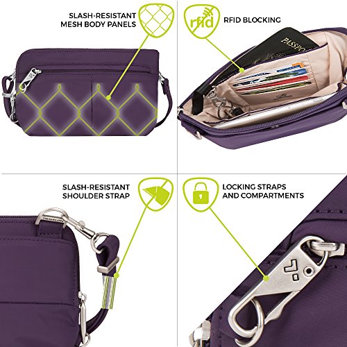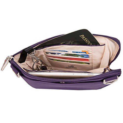 -. Binding : Apparel -. Brand : Travelon -. Color : Multi -. Department : womens -. Feature : 300 T Nylon / 27" shoulder drop / Converts from crossbody bag to a waist-pack with locking carabineer / Main compartment has organizer with card and passport slots / Front zip pocket and rear snap close pocket -. Label : Travelon -. Manufacturer : Travelon -. NumberOfItems : 1 -. PackageQuantity : 1 -. ProductGroup : Apparel -. ProductTypeName : LAGE -. Publisher : Travelon -. Size : 8."5x6"x1.5" -. Studio : Travelon -. Title : Travelon Anti-Theft Classic Convertible Crossbody and Waistpack