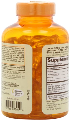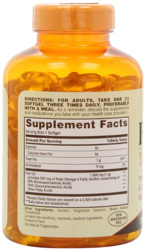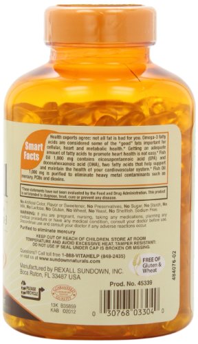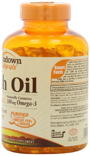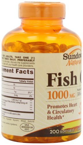 Sundown Naturals Fish Oil, 1000 mg, 200 Softgels (Pack of 2)