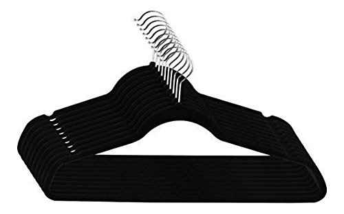 -. Binding : Kitchen -. Brand : Unknown -. Feature : Velvet hangers measures 17.5 by 9 by 0.24 inches each / Strong enough to hold 10 pounds; ultra-thin construction is sturdy enough to hold your coats and pants / Made of sturdy material these hangers can hold and organize your clothes, saving space and tidying up your closet / Soft velvet instead of plastic or metal leaves no crease on the pant when you fold them over / Non-slip black velvet design with chrome finish ensures secure hanging of your clothes with slim and sleek construction to maximize space in your closet -. IsAutographed : 0 -. Label : na -. Manufacturer : na -. ProductGroup : Home -. ProductTypeName : HOME -. Publisher : na -. Studio : na -. Title : Velvet Suit Hangers (50 Pack) Heavy Duty Non Slip Black Clip Hangers