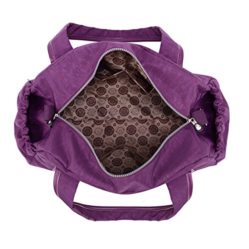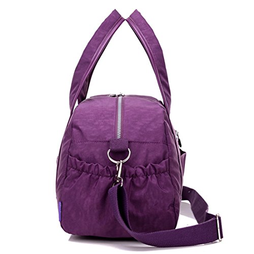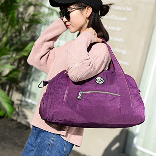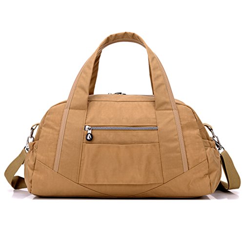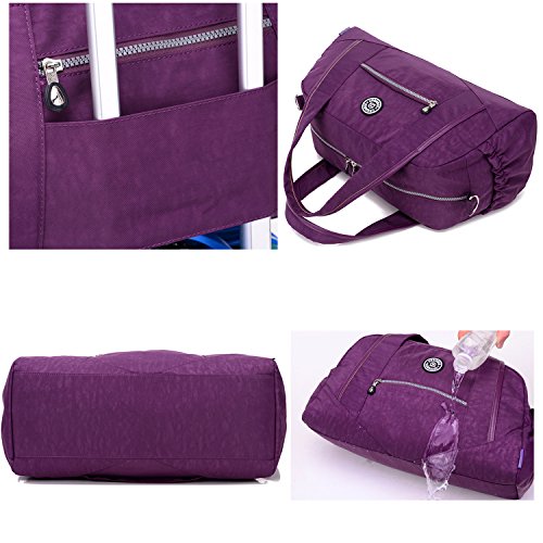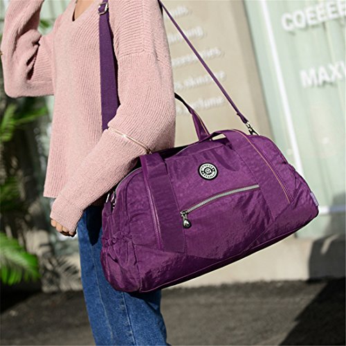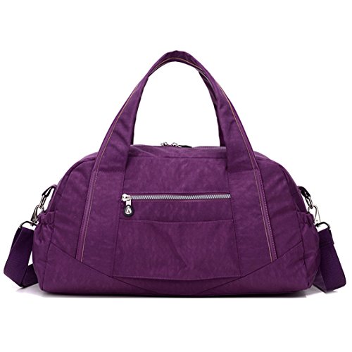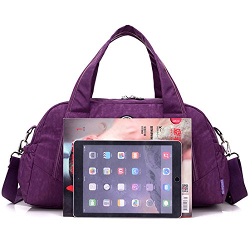 -. Feature : Material:Water-resistant,lightweight and durable nylon fabric / It's very convenient to carry iPad,tablets,clothing,cellphone,documents and so on. / Structure: main department on top with metal zippered;Inside three pockets;Front zippered pocket;Rear zippered pocket;Two side pockets / Convenient to Carry:Totes/Shoulder bag/Crossbody bag/Duffel bag with extra design which can be safely Tied on Draw bar box / Duffle Gym Sports Bag - Ideal for School,Gym,Tavel,College,Shoping,Overnight and Weekends Away