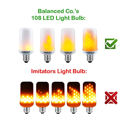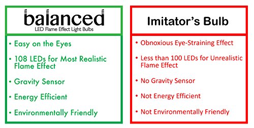MOST REALISTIC FLAME EFFECT ON THE MARKET (108 LEDs!): It is simple. The more LEDs, the more realistic the flame. No one offers as many LEDs per bulb as Balanced Co. Our bulbs do not strobe or strain your eyes like imitator's bulbs do caused by less LEDs.