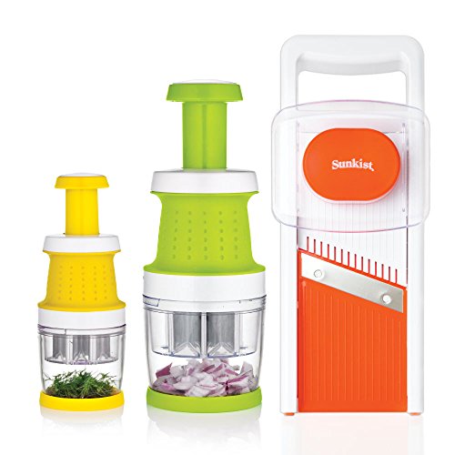 -. Title : Sunkist SAP3800 Kitchen Prep Set with Comfort Grip Chopper, Comfort Grip Mincer, and 2-in-1 Mandoline Slicer, Green/Yellow/Orange