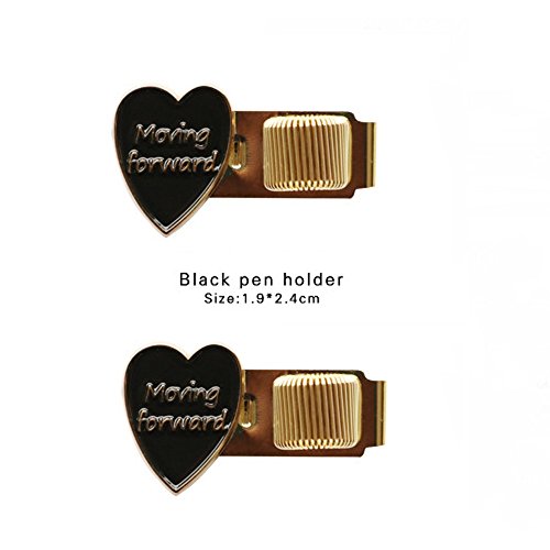 Mandydov 2-Pack Moving Forward Heart Metal Pen Holder For Notebook (black)