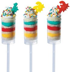 Studio : decopac Publisher : decopac Product Description Clear, plastic, high quality, freezer safe containers. Pack of 25, lids included. Size: 3 1/4"L plus 3/4"H lid, 1-7/8 diameter; stems are 3-3/4". Wash and re-use. Use for creating beautiful ice cream push ups, push up cakes and cream desserts. 0