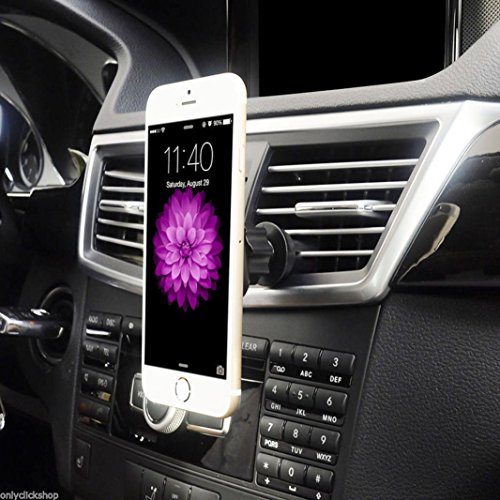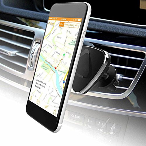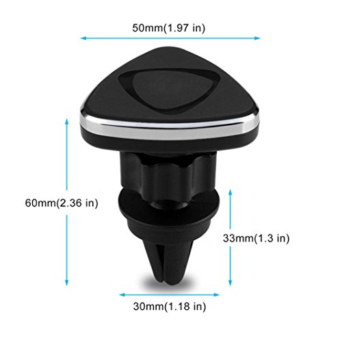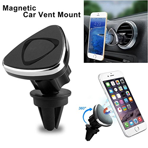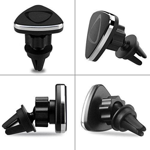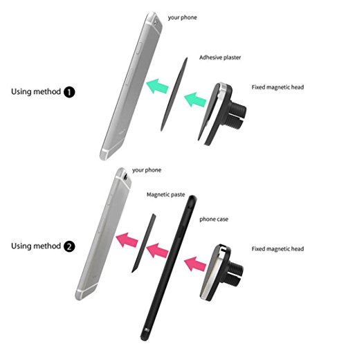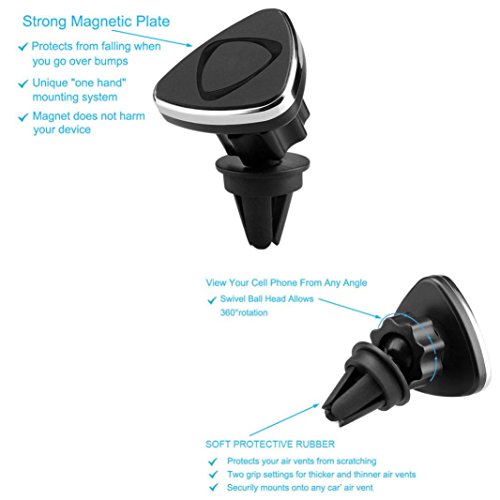 -. Feature : Very easy and quickly removable car phone mount- Within a split second you can take your phone with one hand on and off the magnetic plate of this magnetic cell phone holder. The Magnetic Field is 100% SAFE and does not harm your device. / Universally: Compatible with the magnetic metal plates - the round metal plate with gel pad of 2 mm thickness is for smartphone only users and the rectangle metal plate with charpie protective of 0.5mm thickness is for smartphone with case users. / The swivel ball head allows 360 degree rotation- This car mount gives the ultimate flexibility in viewing your smartphone from any angle. Making it the best universal phone mount accessories for your car, RV, camper, truck or GPS mount. You can also use it as a desk stand. / The ultimate magnetic car mount that fits most of air vent- Securely mounts onto most of type of car air vent using one of the two available grip settings. The rubber slots on the rear, that slide across your vents, protects your air vents from scratching and doesn't leave any permanent stains on your dashboard. / Universal car phone holder with powerful grip to hold any phone- The super strong grips on the back and the strong magnet in this phone holder will protect your device from falling even when you go over bumps. Cradle-less design compatible For iPhone 4S/5/5S/5C/6 Plus - Samsung Galaxy S2/S3/S4/S5 - HTC ONE - Sony Xperia - LG G2/G3,iPad mini and all other cell phones.