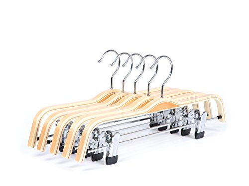 -. Title : Amber Home Natural Wood Pants Slack and Skirt Hangers with Anti-rust Hook and 2-Adjustable Clips 10 Pack