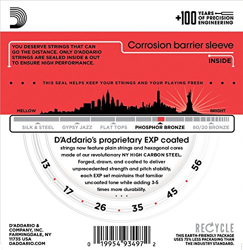 D'Addario EXP17 with NY Steel Coated Phosphor Acoustic Guitar Strings, Coated, Medium, 13-56