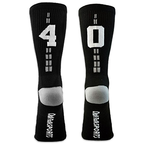 -. Binding : Misc. -. Brand : ChalkTalkSPORTS -. Department : boys -. Feature : 80% Acrylic/ 15% Nylon/ 5% Spandex / Cushioned half cut style delivers secure fit with any basketball shoes or other sports sneakers / Moisture-wicking and air-circulating ventilation blend keeps feet comfortable and dry. Prevents growth of odor-causing bacteria in the sock / Ultra spin knit fabric and arch compression hugs feet and keeps socks in place / One size fits Men's Shoe Size 5-11, Women's Shoe Size 6-12. Socks can be worn on either foot for different number variations -. Label : ChalkTalkSPORTS -. Manufacturer : ChalkTalkSPORTS -. Model : gs-01038 -. ProductGroup : Sports -. ProductTypeName : SPORTING_GOODS -. Publisher : ChalkTalkSPORTS -. Studio : ChalkTalkSPORTS -. Title : Athletic Half Cushioned Crew Socks | Mid Calf | Black | Custom Team Number