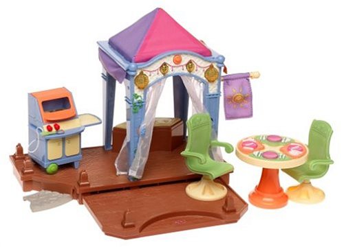 Studio : Mattel Publisher : Mattel Binding : Toy Product Description What a great way to spend a summer evening-relaxing on swivel chairs in the light-up cabana! Listen to music while fixing dinner on the flip-open grill. One side has burgers, the other has steaks. There's plenty of room for friends, so set the table for four and get the party started! 0