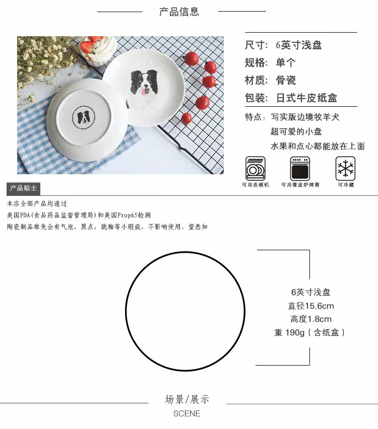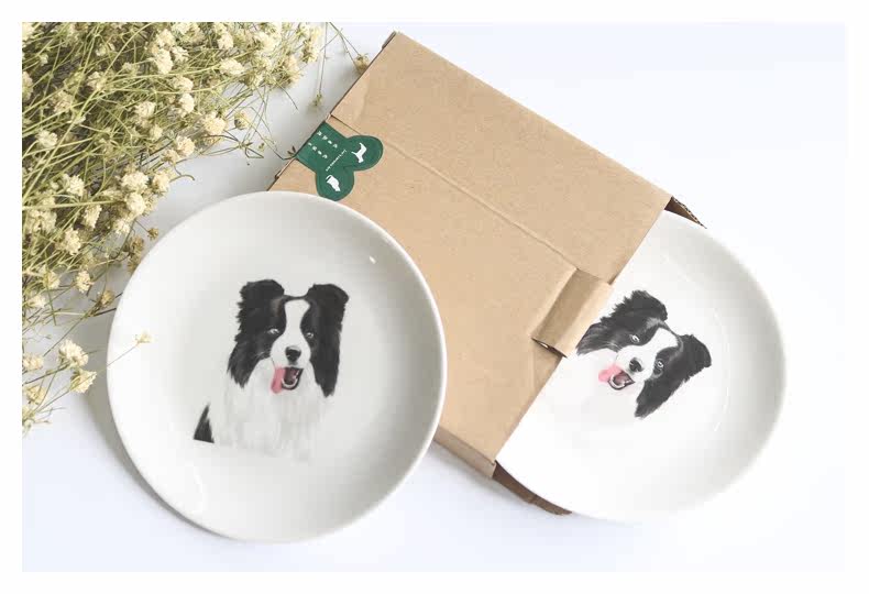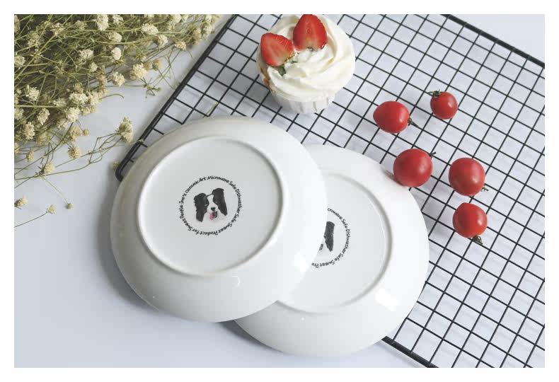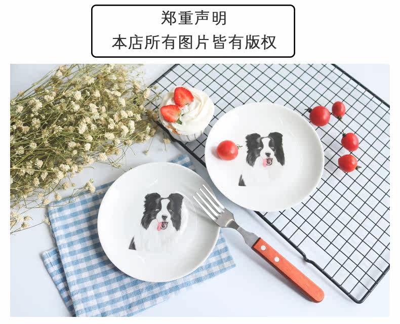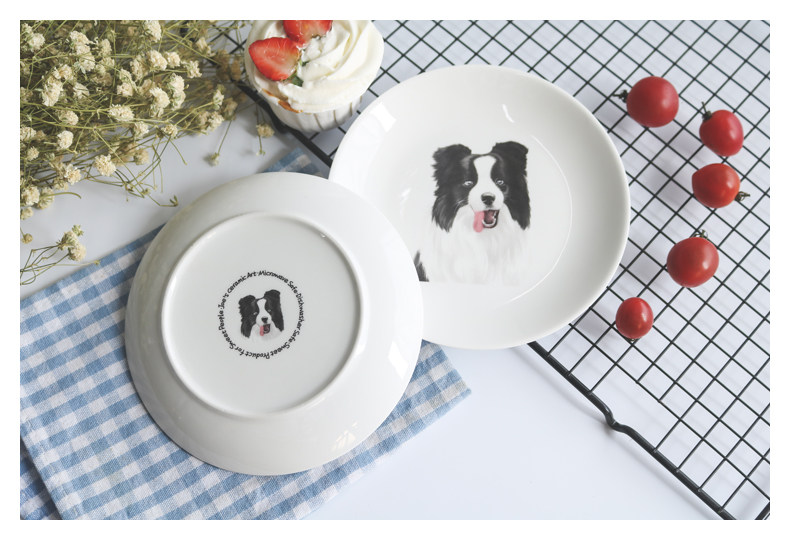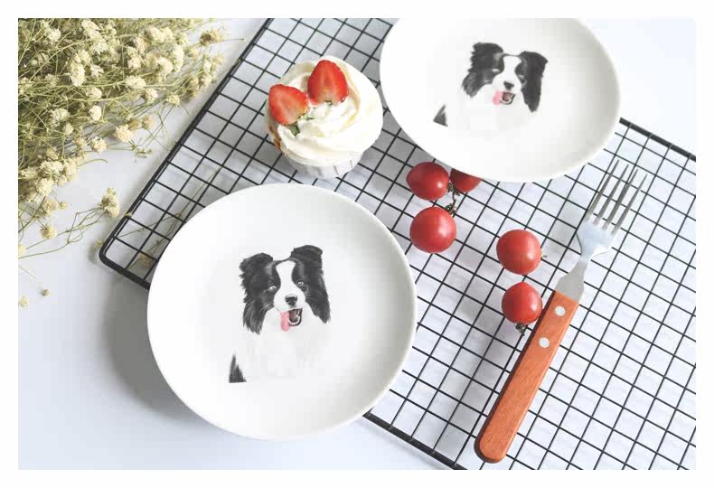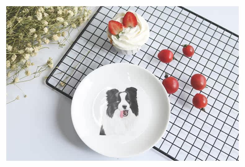 创意卡通餐具边牧系列陶瓷动物早餐盘子小圆盘水果点心盘可爱家用