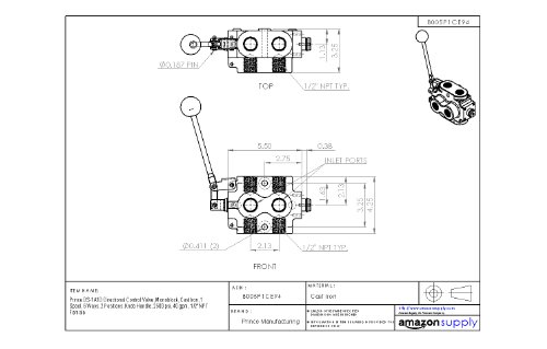 Prince DS-1A1D Directional Control Valve, Monoblock, Cast Iron, 1 Spool, 6 Ways, 2 Positions, Knob Handle, 2500 psi, 40 gpm, 1/2" NPT Female