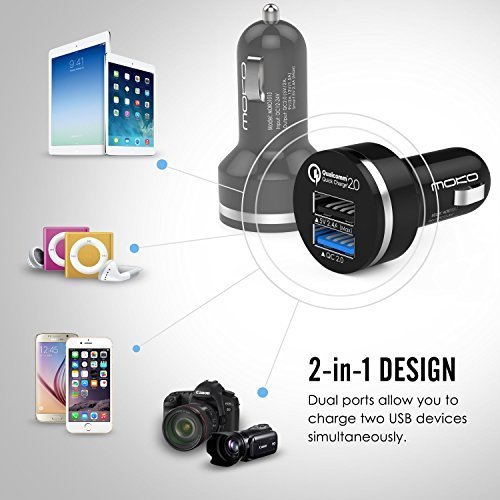 -. Title : MoKo Quick Charge 2.0 Technology Car Charger, 2-Port USB Smart Fast Charging, with Auto Detect Technology for Android Samsung Galaxy S7, S7 Edge, S6, S6 Edge, Note 7 and More, BLACK