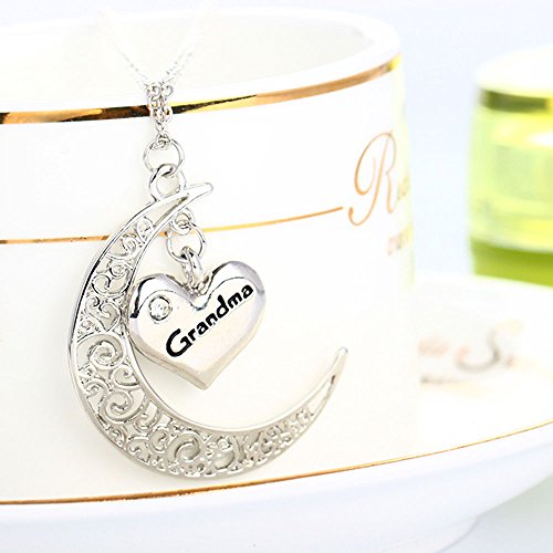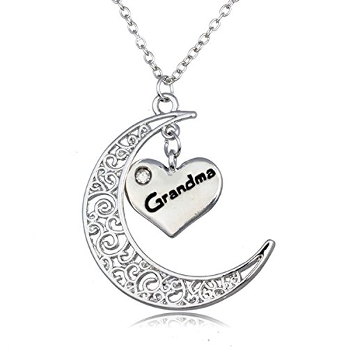 -. Title : Linsh Moon Grandma Pendant Necklace Hollow Out Carved Moon Heart Letter Fashion Jewelry for Grandma