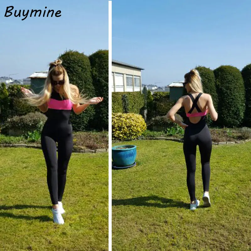 sports jumpsuit, body feminino: Summer overalls female sports jumpsuit full