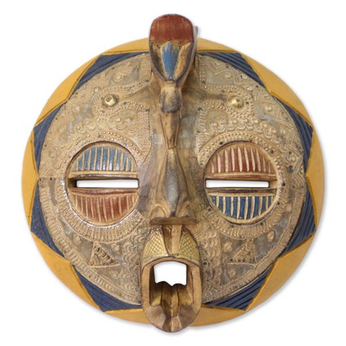 NOVICA Decorative Large Sese Wood Mask, Beige, 'Adeiso Legacy'