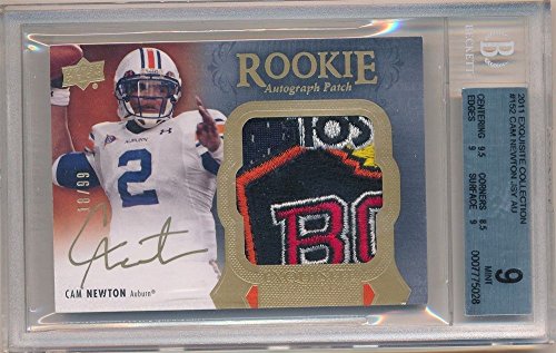 CAM NEWTON 2011 UD EXQUISITE ROOKIE AUTO 4 COLOR LOGO PATCH SP /99 BGS 9 MINT 10