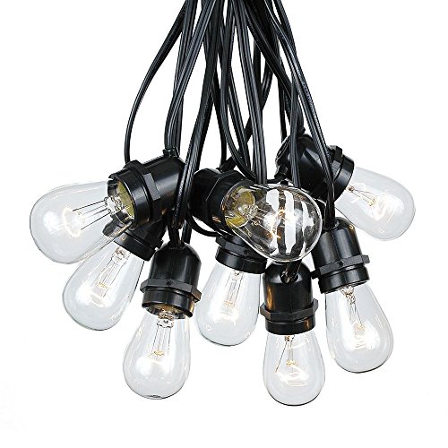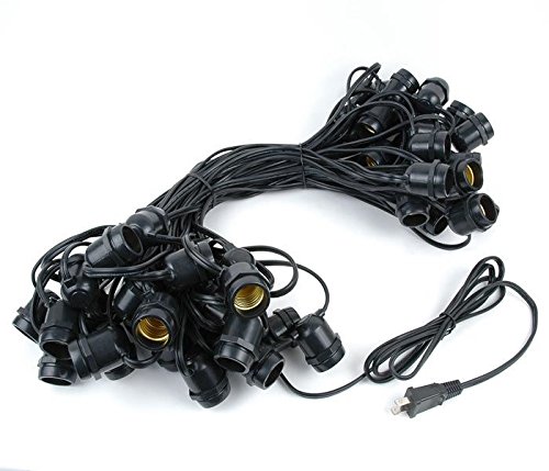 E26 medium base string 100' long with 50 sockets and 50 S14 11 watt Clear bulbs. Our S14 bulb is commonly referred to as an Edison bulb because of its shape and screw in medium base. Make any patio, pergola, restaurant, or special event radiant with our outdoor string lights.