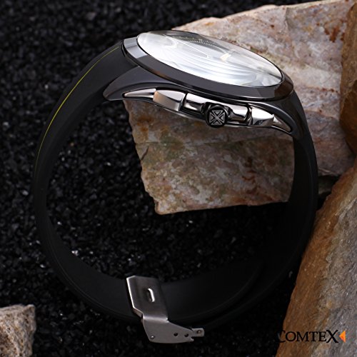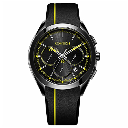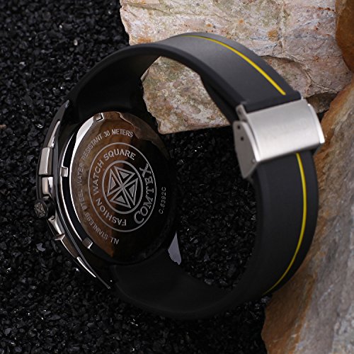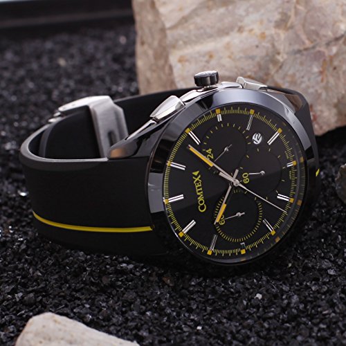 Comtex 손목시계 맨즈 크로노그래프 블랙 실리콘 캘린더 날짜다침 아날로그 쿼츠 손목시계 시계