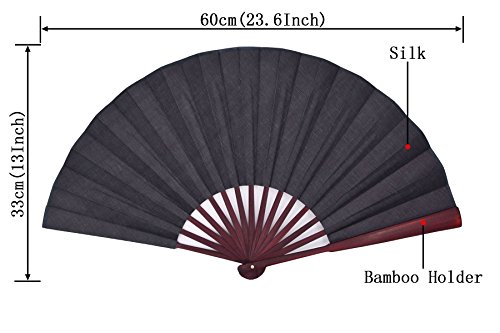 Amajiji 13''(33cm) The blank Chinease/Japanese Hand Held Silk Folding Fan with Bamboo Frame,Chinese Style Men Bamboo Folded Fans Father's Day Gift Hand Held Props for Dancing (black)