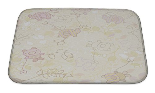 Gear New No Slip Microfiber Memory Foam Floral Pattern with Animals for Kids Design Bath Rug Mat, 24" X 17"
