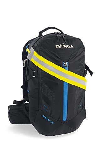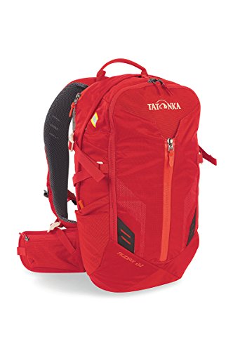Tatonka Audax 22 Fahrradrucksack Körpernahes Tragesystem Volumen: 22 Liter Abmessungen: 45 x 24 x 14 cm Gewicht: 990 g Material: 450 HD Polyoxford, T-Square Rip Großer Bike-Daypack mit ausgefeilten Features Helm- und Lichthalterung sind natürlich Pflicht, daneben bietet Audax 22 aber einige ausgeklügelte Details, die das Herz jeden Radlers erfreuen Das Bügelschloss lässt sich in einem separaten, leicht zugänglichen Fach auf der Rückseite unterbringen, die Werkzeugtasche befindet sich im weit zu öffnenden Frontfach Ein seitlich herausziehbares, elastisches Reflektorband lässt sich über die Front spannen Im großen Hauptfach können Downhiller problemlos ihre Schienbeinschoner unterbringen, und neben der Trinkssystemvorbereitung gibt es auch eine Fixierung für eine Flasche mit Schlauchaufsatz. Vent Comfort-Tragesystem Trinkschlauch-Fixierung am Schultergurt Höhenverstellbarer Brustgurt mit Signalpfeife Verstaubarer Hüftgurt Hüftgurt mit ReißverschFeature