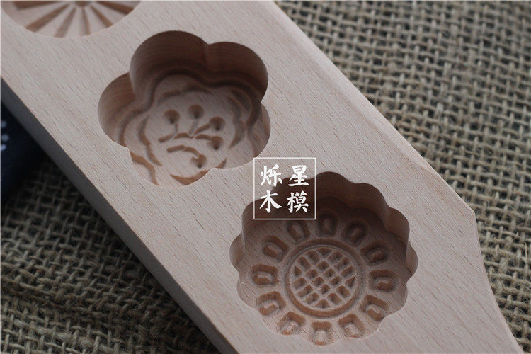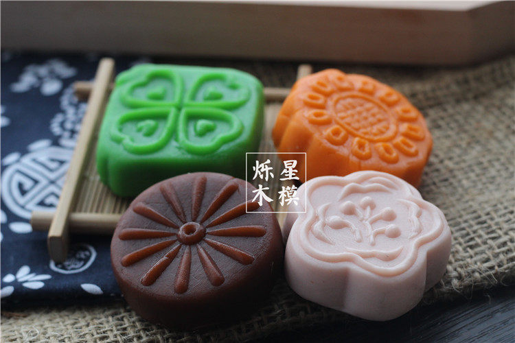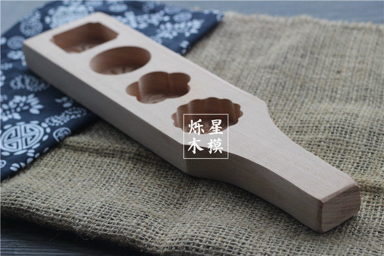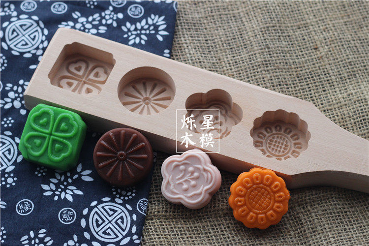 四孔花型手工面食糕点馒头绿豆南瓜饼冰皮月饼模具木质