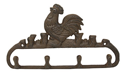 - Cast iron 4-hook rooster hook rack