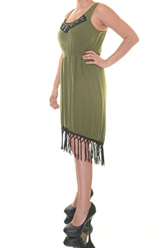 NY Collection Women's High/Low Midi Dress with Fringe Hem
