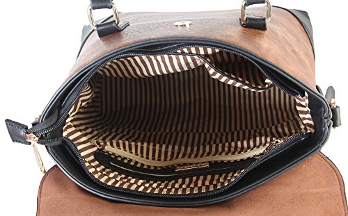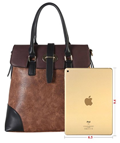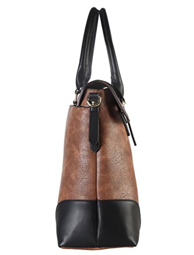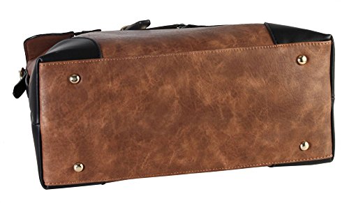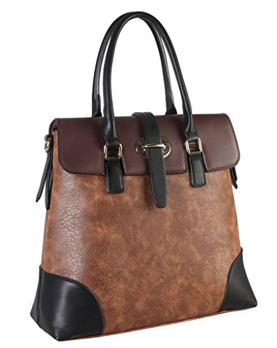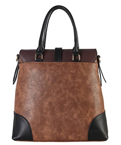 Diophy PU Leather Two Tone Birkin Style Tote Accented with Buckle Décor Womens Purse Handbag AB-013