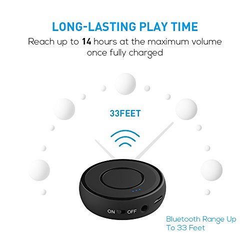 - Nonstop Play: Built-in battery provides up to 14 hours’ at the maximum volume of play time, or up to 250 hours’ standby time. Only takes 2 hours to get fully charged with included micro USB cable. The maximum control distance range up to 33 feet / 10 meters.