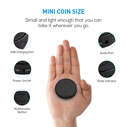 - Automatically Re-Connection: When the Bluetooth function of a mobile phone is ON, power on the headphone or speaker, it will connect with the last mobile phone or computer automatically. What You Get: 1x Portable Bluetooth Receiver; 1x Micro USB charging cable; 1x 3.5mm audio Cable; 1x User Manual; 24-month product warranty and 7×24 hrs friendly customer service.