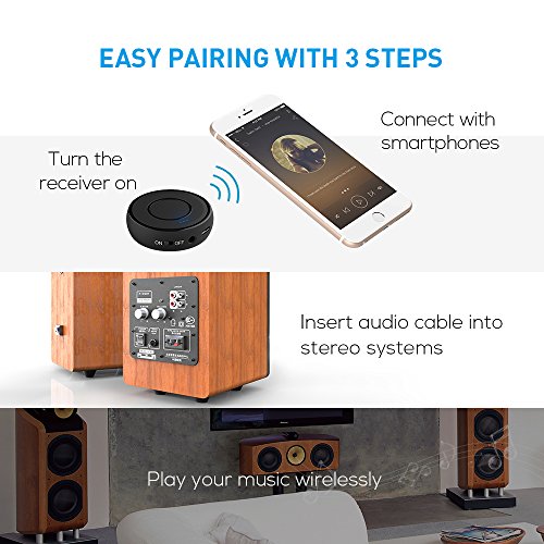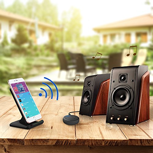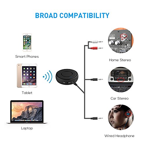 - Wider Compatibility: Provides connectivity via A/V, RCA, and 3.5mm AUX/jack input. Enjoying clear stream music wirelessly and ubiquitously through most home audio systems, car stereo set ups, and wired headphones from Bluetooth enabled devices like smartphones, tablets, MP3 players, etc.