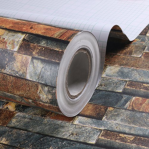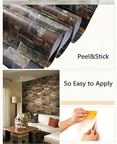 -. Feature : Vintage Brick Stone Wallpaper, Peel and stick to apply (no water, no mess!) / 100% removable peel and stick wallpaper. Easy to Apply. / One Large Roll, Each Roll is 23.58" Wide, 19.7 Feet Long Covering 38.6 Sqaure Ft. Drop match / Repositionable and reusable, no sticky residue left behind upon removal / Perfect usuage for Stairs, Dresser, Shelf, Cabinet.
