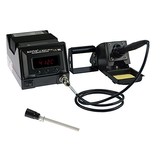 Aoyue 937+ Pro Series 45 Watt Programmable Digital Soldering Station-ESD Safe, C/F Switchable, Configurable Iron Holder, Spare Plug-in Heating Element