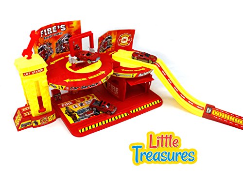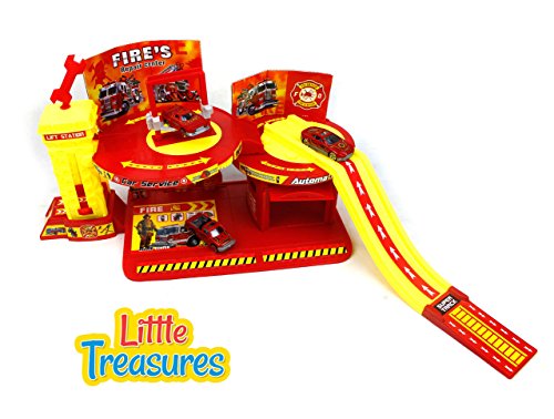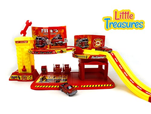 The fire alarm play set will allow your child to imagine themselves as a full-fledged fireman fighting fires and bringing people to safety. Whether riding down the ramp of the station on the fire truck or rescuing someone from a burning building your child will have hours of fun. The possibilities of play are only limited by the imagination. Creative play encourages children to use their imagination. Encouraging the development of imagination will help your child learn how to solve problems in an innovative way. Imagination plays a role in the child's understanding of the world and how it works. It is necessary for learning and allows children to wonder about the future, like what they will want to be when they grow up. The fire alarm playset is perfect for interactive play either alone or with friends. When children play together making their own adventures it develops their social skills and teaches them how to see from someone else's perspective. All of which are important to their cognitive development. Every child that plays with the fire alarm playset enters a world of play where they can create an adventure about anything and everything. With unlimited possibilities, the adventure is never the same.Feature