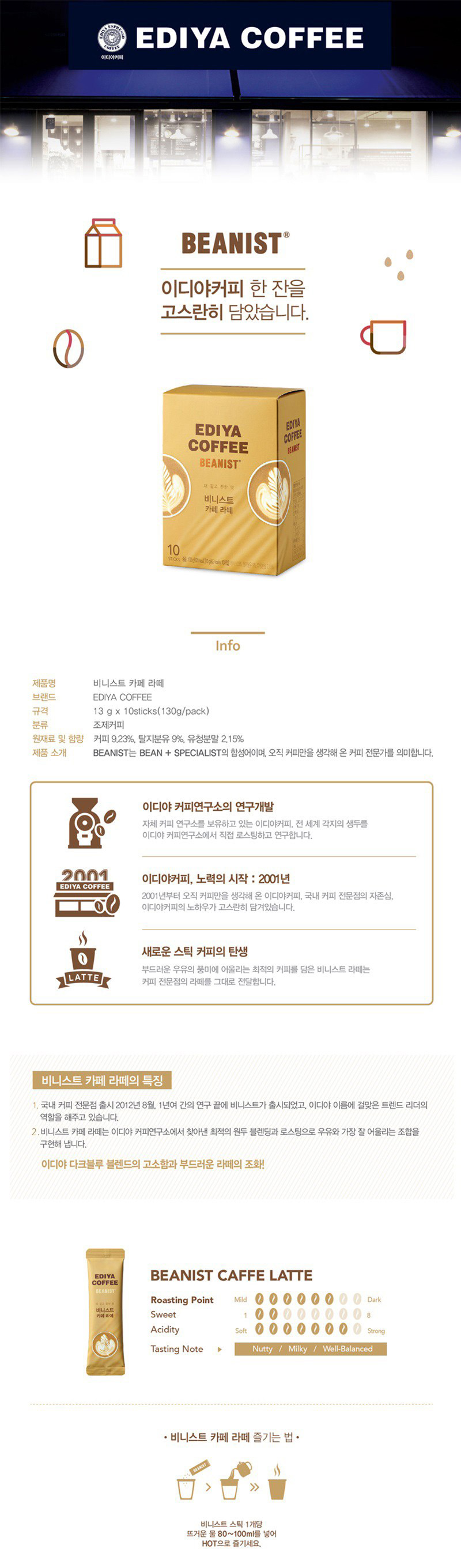 ★Ediya Beanist Caffe Latte 13g 10T★